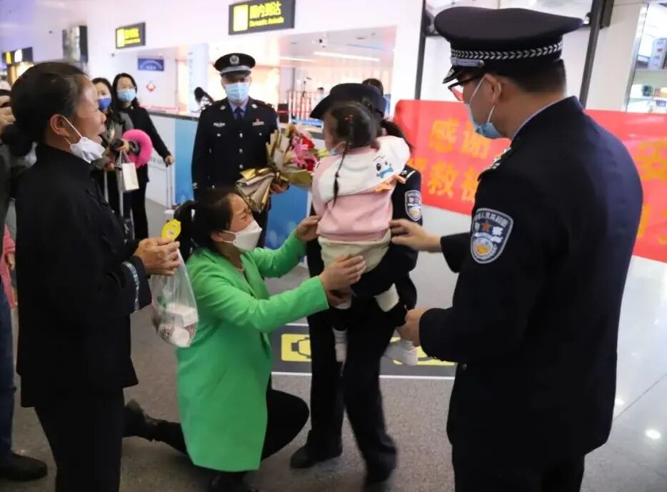 在人来人往的机场出口,闭女士紧贴栏杆翘首盼望。当看见民警抱着日思夜想4年的女儿出现时,她泪如泉涌,将女儿紧紧抱在怀里。那一刻,骨肉的团聚让在场的人感动不已。