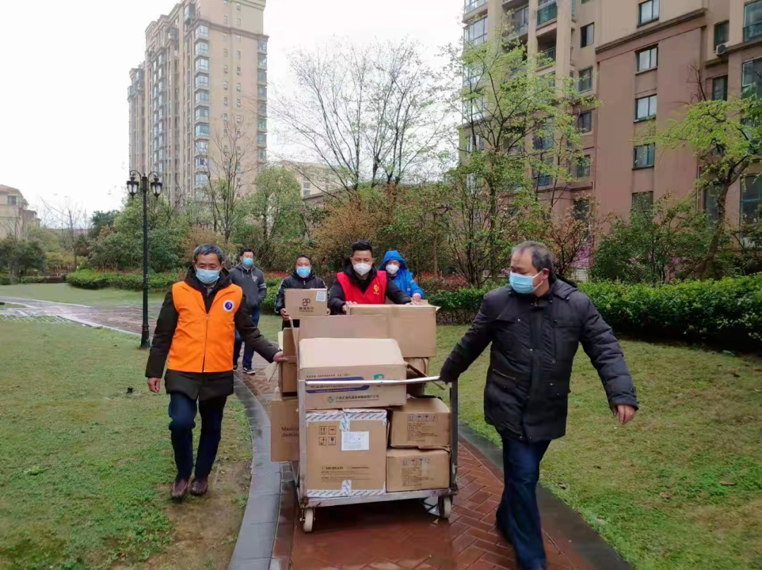 ▲协助社区将肉、蔬菜等生活物资配送入户。