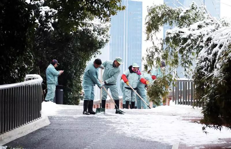 从清晨甚至更早开始,数以万计的环卫工、交警、武警官兵、社区干部们就已出动,铲雪、撒盐、铺草垫;多个相关部门、单位,亦在第一时间启动应急措施,确保第一时间高效传递信息、及时应变。