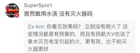 有一些网友吐槽空姐用矿泉水灭火