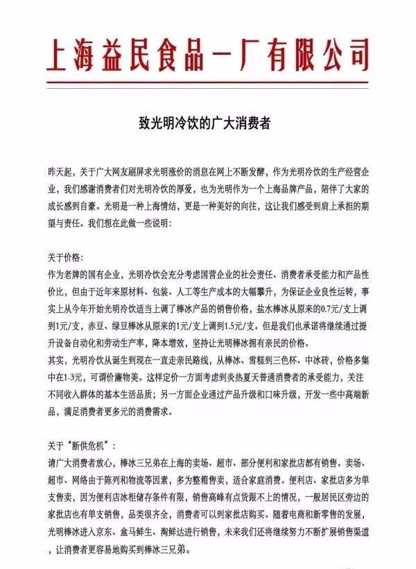 光明冷饮回应“断供危机”:将扩展销售渠道,消费者更容易地购买到棒冰三兄弟。