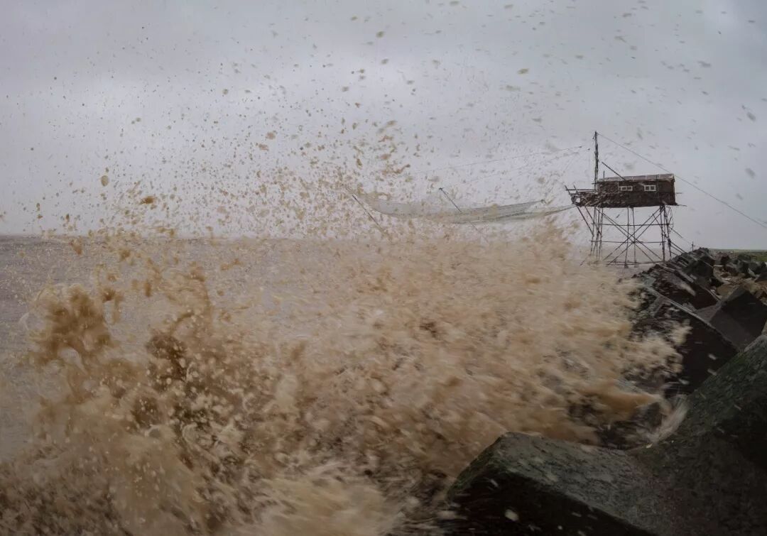 台风“安比”给南汇嘴的海岸带来巨浪。