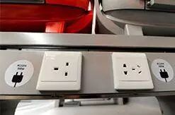 贴心的是,车厢里每列座椅前均安装了多地制式的插座。