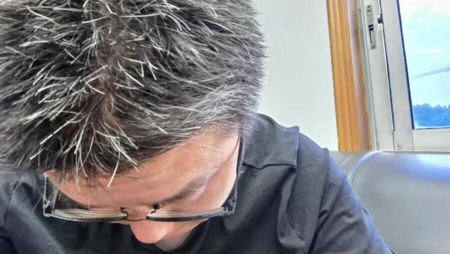 “村里人说我头发白了好多,我本来没注意,自己拿着手机拍了张照,才发现果然如此,也许是这段时间压力太大了吧!”