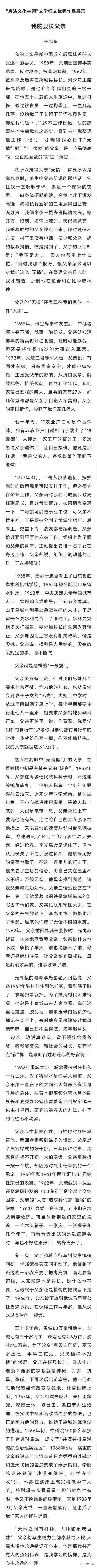 “看完了这篇《我的县长父亲》,不由得热泪盈眶,这篇《我的县长父亲》文章获奖和某部电影里《我的区长父亲》文章获奖的情节完全是两回事,得奖都实至名归,应该被赞扬、被广泛传播。”