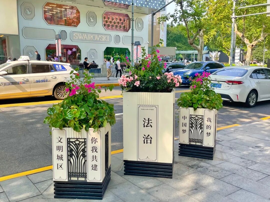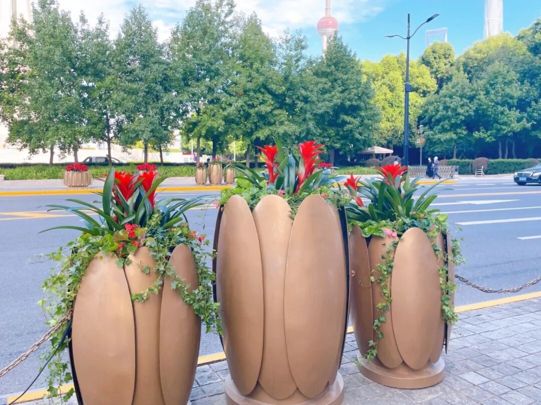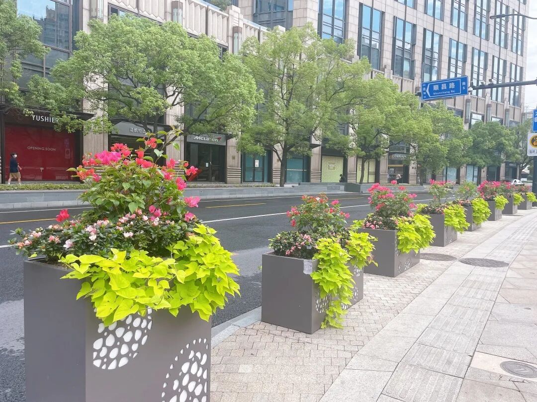 黄浦区此次在人民广场、新天地、外滩、淮海路等重点区域,以三角梅、西洋鹃、姜荷花、常春藤、超级海棠等时令花卉搭配绿植,组成各种模纹图案及绿地花箱,体现秋季花卉的缤纷姿态。