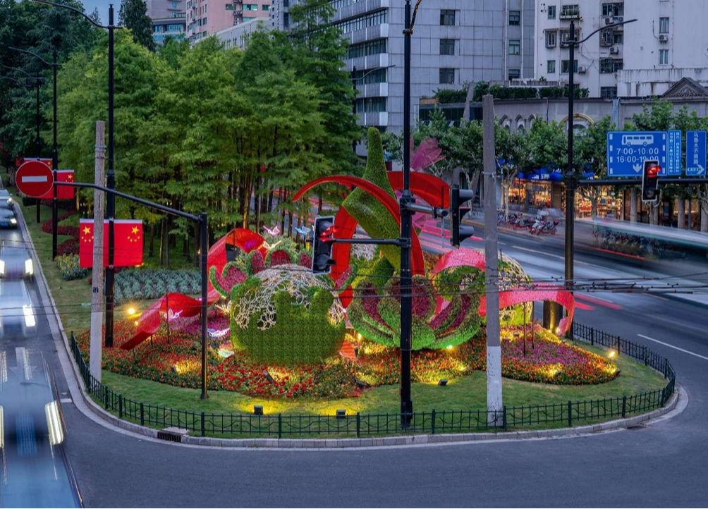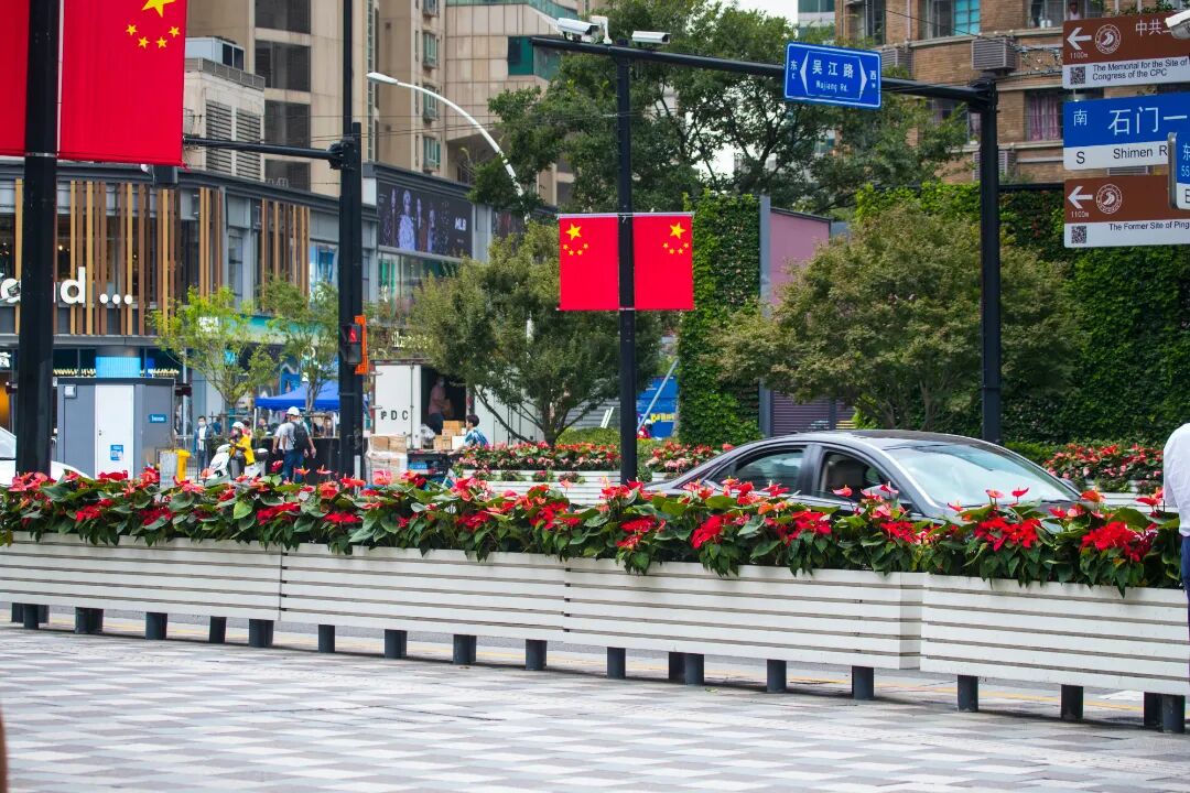 国庆假期到来,申城街头的花卉焕然一新。今年国庆期间花卉布置,聚焦重要区域、重点道路,其中包括人民广场、外滩、陆家嘴等三个市级核心区域;静安寺区域等8个市级重点区域;延安路等12条重点道路开展。来看看↓