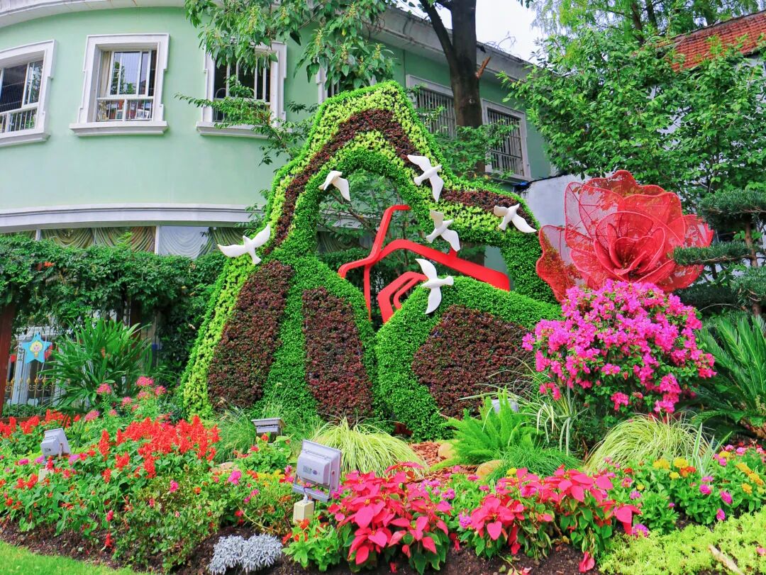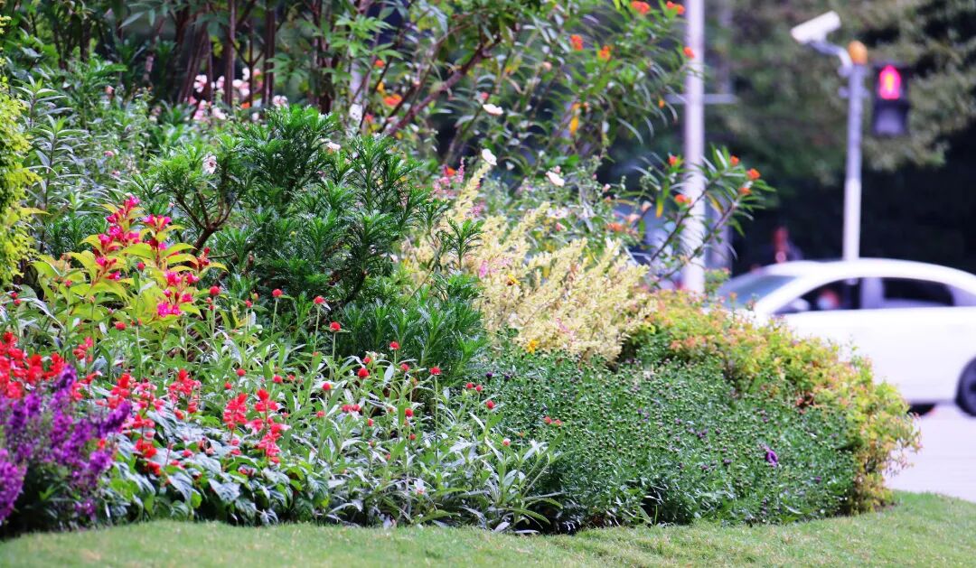 花卉布置形式包括花坛花境、主题景点、组合容器、灯杆花球及其它布置形式。植物品种应用亮点纷呈。