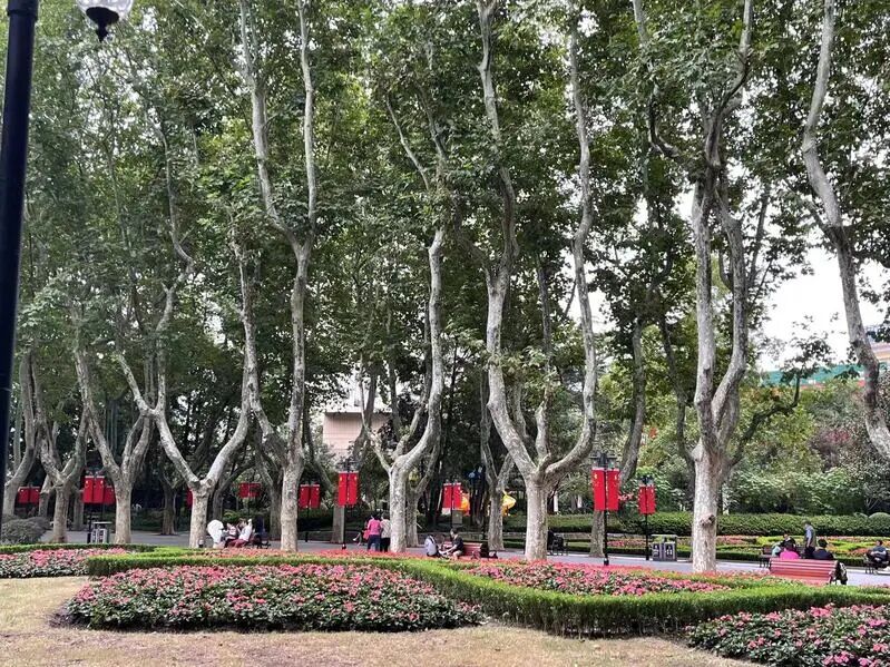 位于市中心的这个法式公园,早在2015年改造时就打开了围墙。大家来这里下棋、打牌、打拳、聊天,有的在地上用水写字,有的在空地上打羽毛球。东北角有个儿童乐园,不少家长带着孩子来这里玩耍。逛淮海路的市民游客,逛着逛着就逛到了襄阳公园,饱赏都市里这一绿色静谧之处。