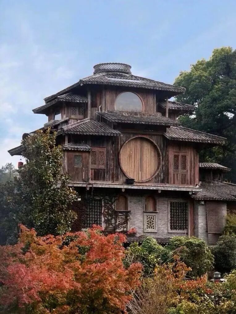 这幢“网红楼”的用地,产权属于满觉陇村。1998年,满觉陇村集体将该处出租,承租人为倪某。倪某租下此处后进行了改建,风格参照汉代建筑,所用材料不少是特意收集来的。