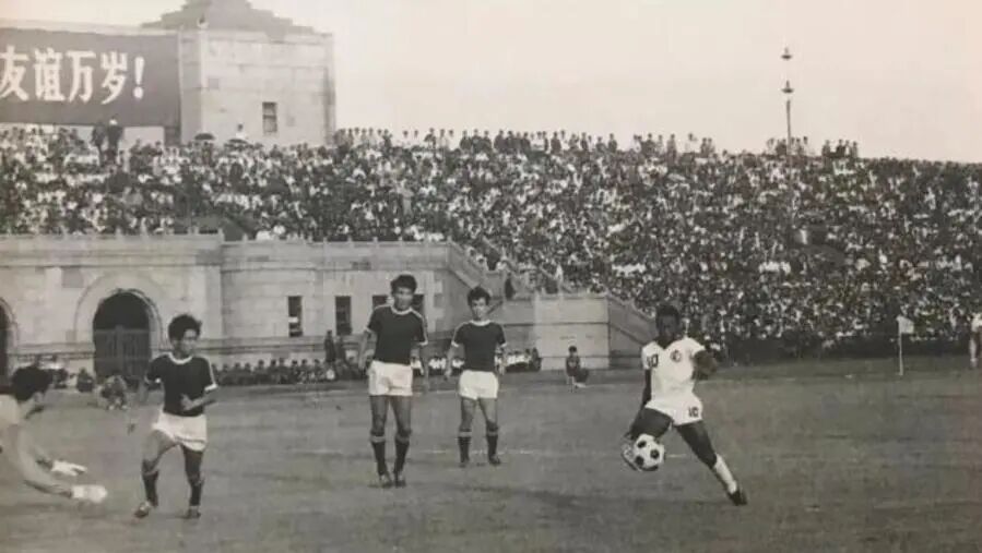 1977年,已经37岁的贝利迎来了在美国纽约宇宙队效力的最后一个赛季。随后,宇宙队老板安排贝利率队进行为期一个月的全球巡游,并来到亚洲参加一系列表演赛,其中就包括中国。