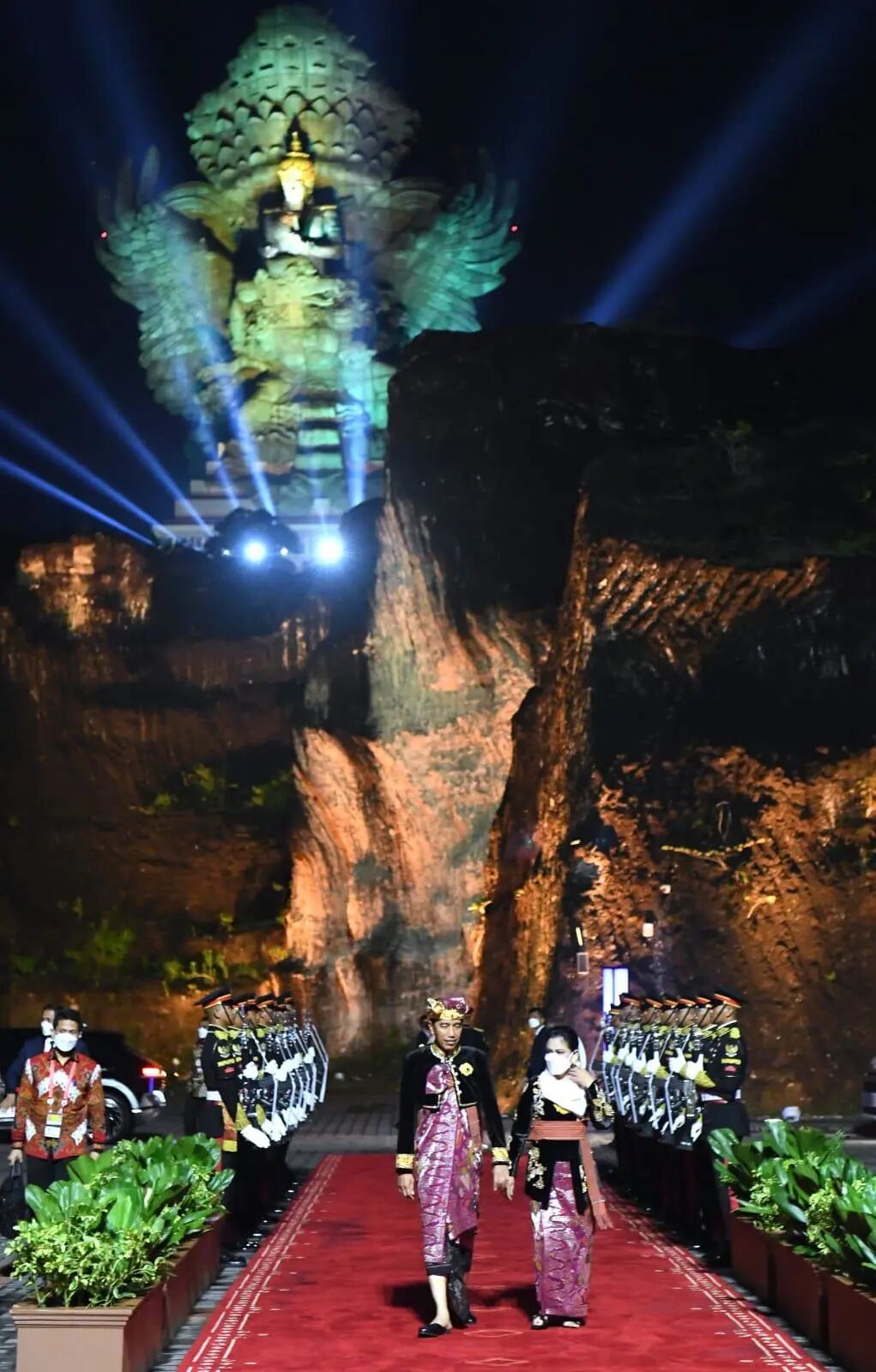 而G20期间最隆重、最盛大的表演,是11月15日晚宴期间在神鹰广场举办的文化表演。在神鹰广场最大的“地标”——中心莲花池,以神鹰雕塑实景为背景,整场演出灯光璀璨,美轮美奂,精彩绝伦!融合了舞蹈、音乐、传统乐器等艺术形式,绚丽的舞台与自然景观相得益彰,印尼向世界奉献了一场完美的文化盛宴。