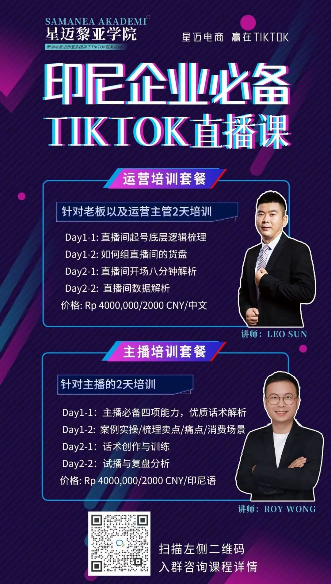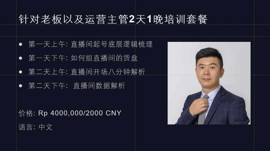 2. 针对印尼本地主播团队的2天培训课,由星迈学院副院长Roy采用印尼语授课,讲述主播必备四项能力,直播案例解析,梳理商品卖点、痛点和消费场景,并在培训进行话术创作,以及试播。