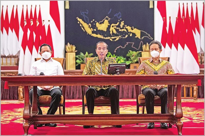 图:佐科维总统在雅加达国家宫宣布撤销社区活动限制(PPKM)措施