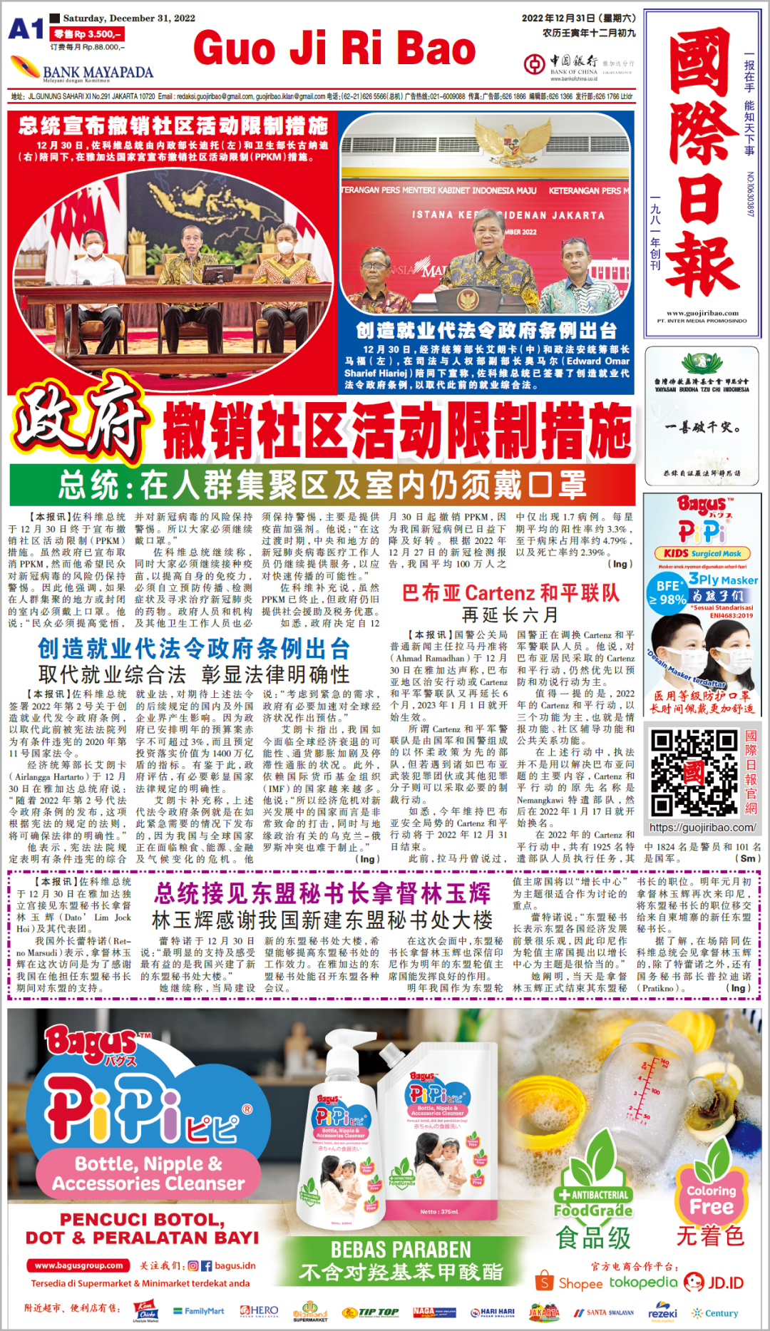 【本报讯】佐科维总统于12月30日终于宣布撤销社区活动限制(PPKM)措施。虽然政府已宣布取消PPKM,然而他希望民众对新冠病毒的风险仍保持警惕。因此他强调,如果在人群集聚的地方或封闭的室内必须戴上口罩。他说:“民众必须提高觉悟,并对新冠病毒的风险保持警惕。所以大家必须继续戴口罩。”