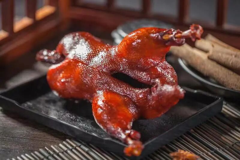 三珍斋的酱鸭之所以好吃,关键在于它对食材、配比和火候的把握。酱鸭选料考究,用的是膘肥体壮的鸭子。加工时整体烧制,原汁浸烧,遵循独创的“三煮三晾”工艺。作为酱货,酱汁的调配是成败的关键,而三珍斋酱鸭的美味秘诀,都在那锅常年不断烧制卤味的卤汁中,因其珍贵如浓汁,内行人称之为“老膏”。配上有着百年历史的秘制大料包一起熬制,半小时鸭子上色,取出挂晾即可,接下来的一切就全部交给时间。数天之后,等到酱鸭表面黑得油亮、红得透彻,即是大功告成。