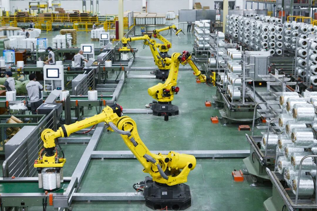 走进新凤鸣集团车间里,5G质检机器人在0.2秒之内识别出生产线是否存在飘丝、飘杂等问题,承担起整个车间的精准检测任务。