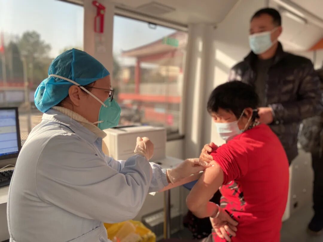 该村村委委员王俊卿介绍,从周一开始,他们就通过微信和电话方式告知未接种人员,针对没有手机的老年人,村里还安排人员上门通知,确保疫苗接种“不落一人”。一个上午,就有50多位村民在疫苗流动接种车上完成了接种。