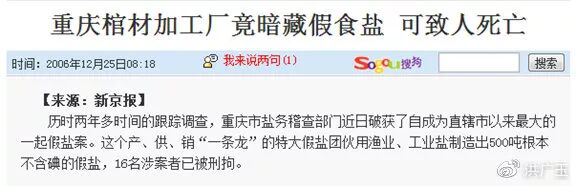 2004年以后,这类错误报道就越来越多了。以至于到了后来,凡是谈到了私盐、工业盐,“严重危害”的告诫成了标配。
