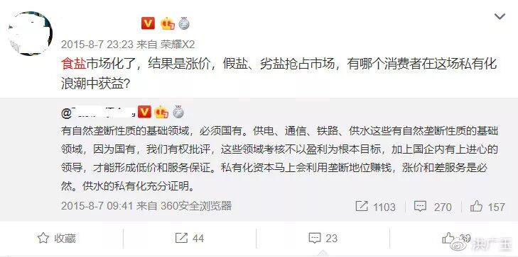 然而,流传十多年的谬误对于群众的洗脑是非常成功的。工信部确定2016年起废止盐业专营制度,2018年1月4日国务院发布修订版的《食盐专营办法》,废止《盐业管理条例》,打破食盐地区专卖,放开食盐价格。但很多人却忧心忡忡,认为食盐放开垄断经营会导致“假盐泛滥”,让食盐更不安全,称“食盐还是由国企垄断更安全”。这种担忧显然是莫名其妙的,因为现在的法规只是打破了销售的垄断,生产还是“专营”的呢。