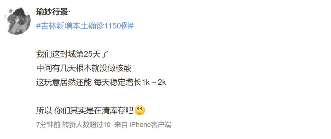 既然封了城,生活节奏就不可能正常,只要还有吃的,只是吃不新鲜蔬菜大家还是能忍的。但是,眼下吉林人民最焦虑的是:不知道疫情何时是个头,什么时候才能解封。