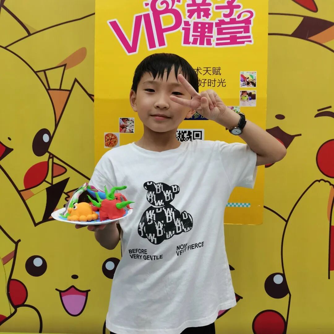 在锦江百货二楼制作手工粘土,小朋友们用奇思妙想创造出一个个丰富的海洋世界。