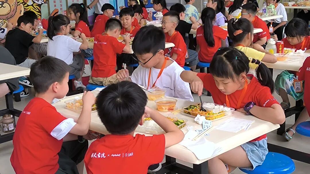 城西街道总工会为小朋友们送上了统一定制的班服T恤、书包、运动鞋,打造满满集体归属感。工会工作人员每天都会从绿茶餐厅统一采购“爱心午餐”,免费提供给志愿者和小朋友们。此外,还给大家购买了意外伤害责任保险,筑牢饮食、出行安全屏障。