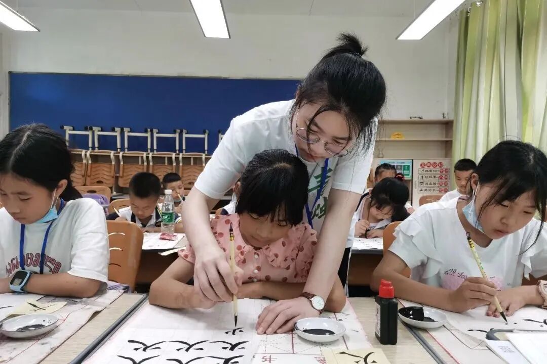 今年的暑托班迎来了15位高校师范生志愿者的加入。来自台州学院的“尚善若溪”暑期社会实践队与爱心托班精准对接,根据每个志愿者的不同特长,开设舞蹈、武术、美术、朗诵、书法、国学等拓展性课程。托班的孩子们上午自由选择想去的兴趣课,下午回到所在班级完成暑假作业和课外阅读。