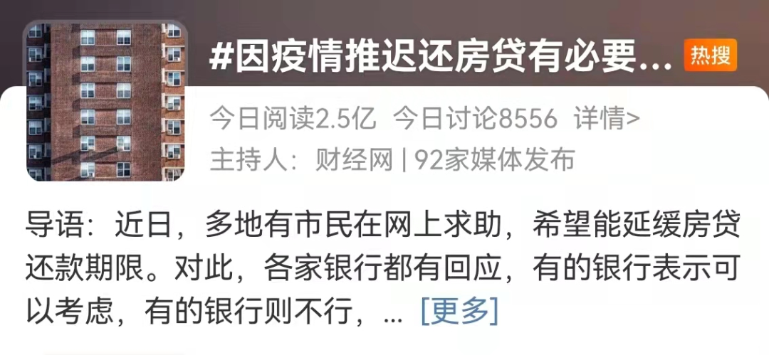 据红星新闻报道,中信银行一位客服人员表示,因疫情可以申请延迟房贷的政策,目前该银行接到的通知已有苏州、福州、深圳、河北部分地区。