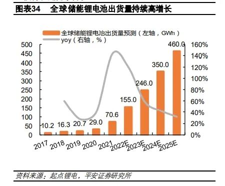 市场空间我们认为无论独立储能还是新能源配储,本质上都源自可再生能源装机对灵活性资源的需求。所以,我们还是采用的集中式新能源新增装机以及配储率的假设,对国内大储市场空间进行估算。我们预测,2023年国内大储新增装机有望达到33.2GWh,同比增长1.2倍;2025年可以增长到90.2GWh以上,未来3年复合增长率达到83%。