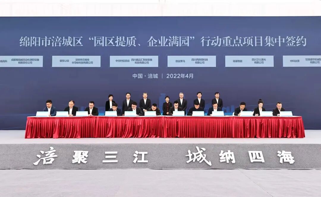 “园区提质、企业满园”行动重点项目集中签约仪式在绵阳市涪城区举行,中国科技城四川发展两业融合创新产业项目总投资达100亿元,该项目落地将加快绵阳市临港经济发展区建成开放创新智慧低碳的千亿级现代产业园区的建设步伐。