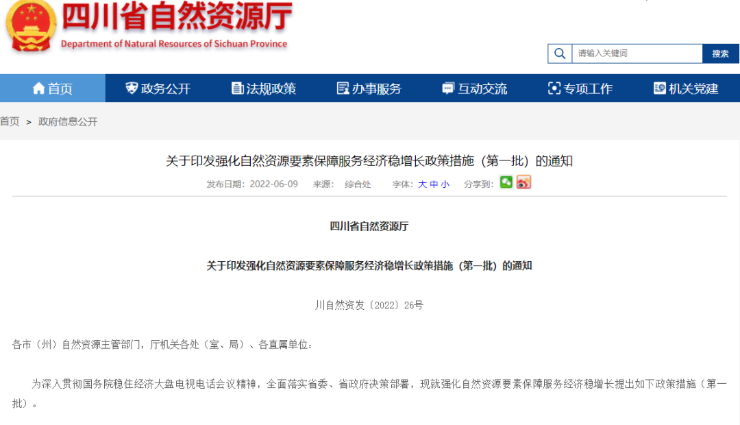 “为了全面落实国务院扎实稳住经济一揽子政策措施的要求,自然资源部有针对性地提出了保障建设项目落地涉及的用地用海的阶段性政策措施,日前已印发《关于积极做好用地用海要素保障的通知》《关于加强用于审批前期工作积极推进基础设施项目建设》,我们将把部委支持政策和四川拼搏精神结合起来,坚持稳字当头、稳中求进,举全系统之力夯实稳增长地基。”