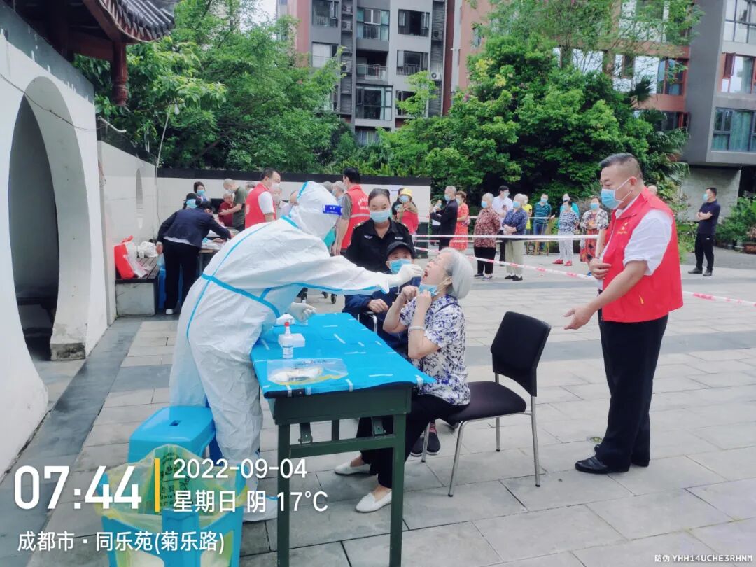 厅离退休处32年党龄老党员李玉京第一时间来到双楠街道菊乐小区向社区报到,作为一名志愿者,协助开展疫情防控卡点值守、小区(院落)巡查、搬运物资、核酸检测点秩序维护,从下午5点到夜里12点,他连续作战,始终“战斗”在成都疫情的最前线。