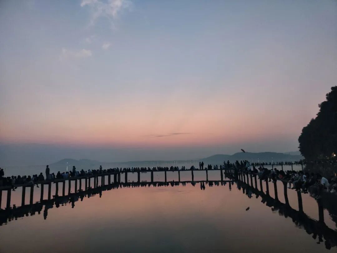 你见过凌晨5点的东湖吗?哈哈哈我见过。在东湖栈桥,和定协的朋友们一起看着那一轮红日离开了地平线缓缓升起,将天边染成红色,原来太阳公公也在用自己的方式为祖国母亲庆生!