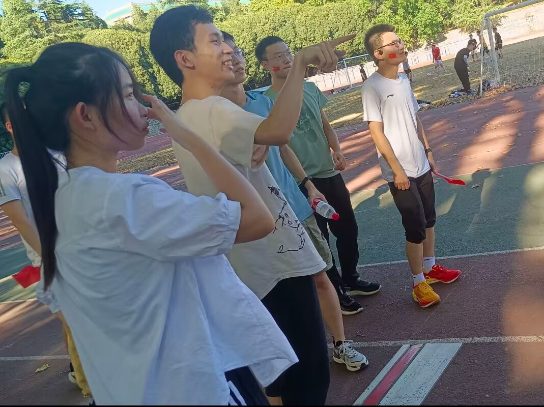 稍作休息后同学们在操场集结,开始热身,部长向大家讲述相关规则和注意事项,为即将开始的跑图做准备。