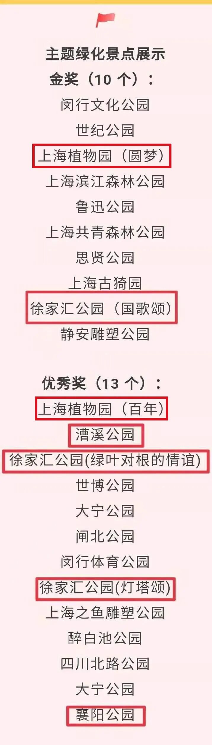 为庆祝建党100周年,上海市公园管理事务中心与上海市公园行业协会组织2021年迎建党100周年公园园艺展示活动。经过专家组前期方案审核和后期现场考评,徐汇区徐家汇公园、襄阳公园、漕溪公园等榜上有名,一起来看看吧!![]()