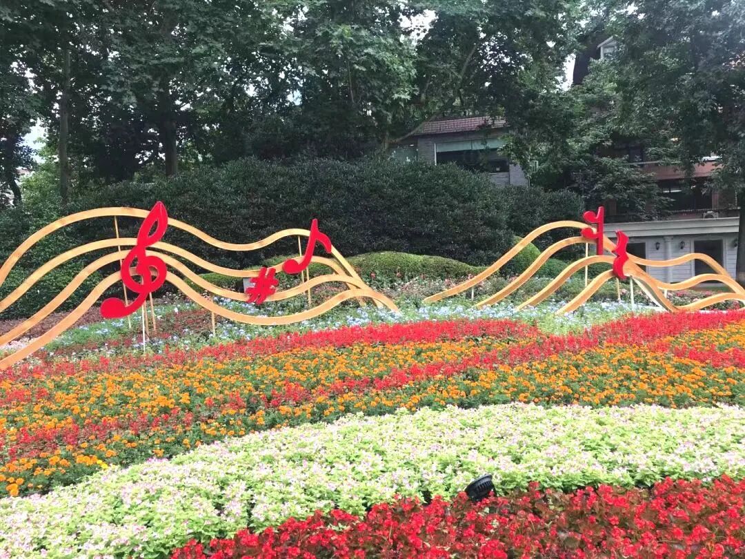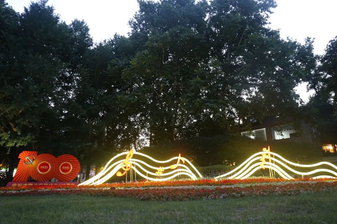 以红色序曲“国际歌” 和红色花卉构筑“建党100周年” 主基调,选用时令花卉植物组成,赋予其设计感;国际歌音符100字样点缀其间,营造出了一片花团锦簇的节日氛围。