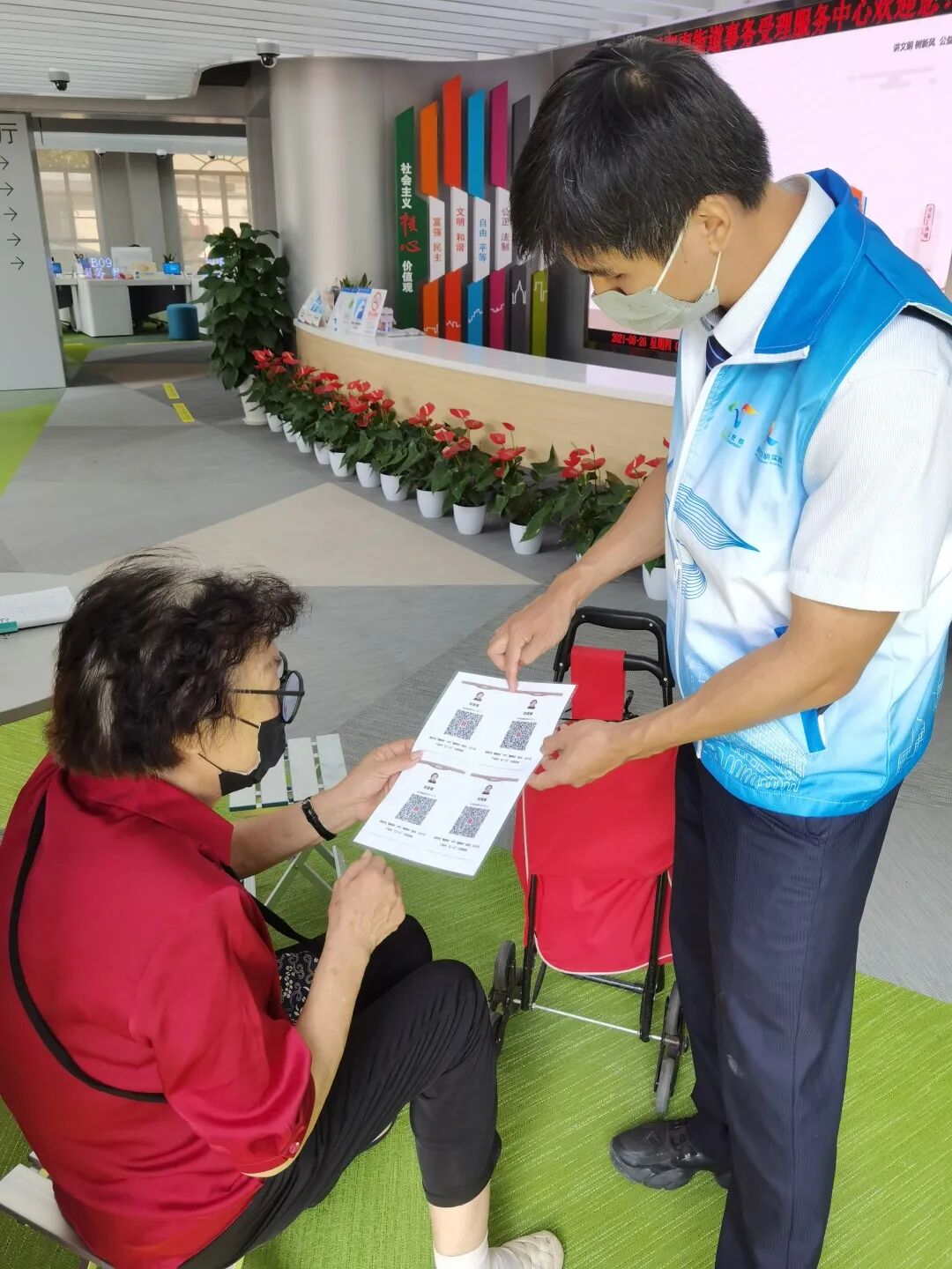 中心志愿者看出刘阿姨的心思,主动为刘阿姨进行塑封。拿到塑封后的“离线码”,刘阿姨笑着说:“这下好了,用到过期也不愁啦!”