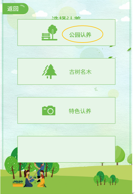 第二步:点击屏幕下方菜单栏“我要认养”,可参加网上绿化认建认养。