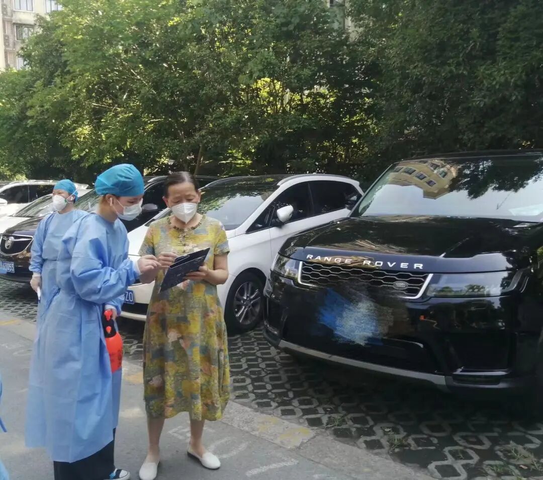 想必昨日的高温天让大家都体验了一把“挥汗如雨”。住在华泾镇臻园的王阿姨早上七点就下楼排队做核酸,光走到采样点都已汗流浃背,看到志愿者和社区工作人员裹得严实地为居民们做登记、采样服务,她不禁感叹:“太不容易了”。