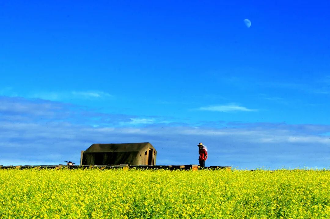 油菜花开满地黄,丛间蝶舞蜜蜂忙