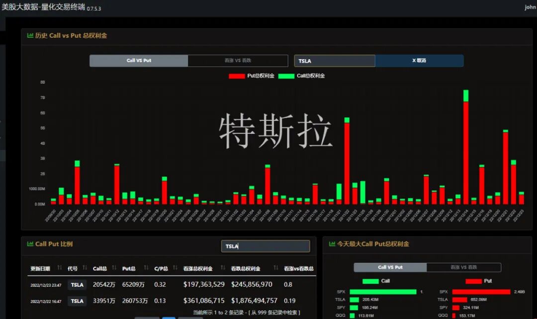 根据美股大数据量化交易终端 StockWe.com 机构们空头最近一周疯狂做空特斯拉,红色的Put远远超出Call,我们会每天实时量化监控特斯拉多空比例,发布到我们的社群。