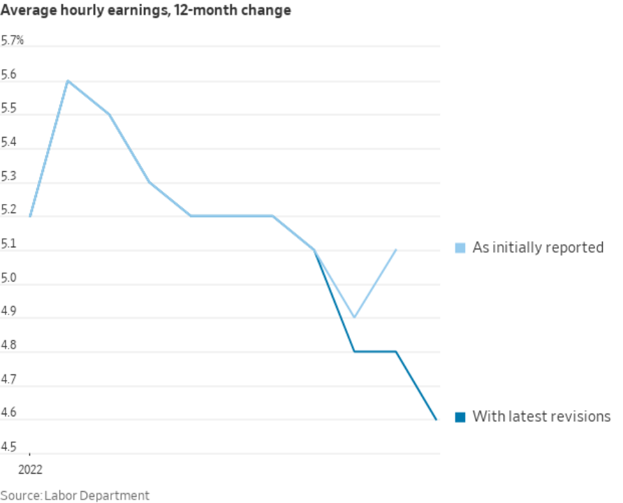 12月工资通胀显著降温,平均每小时工资环比仅增长0.3%,低于市场预期0.4%,前值修正值为0.4%;同比增长4.6%,同样低于市场预期的5%,11月份修正值为4.8%,为2021年8月以来最低。