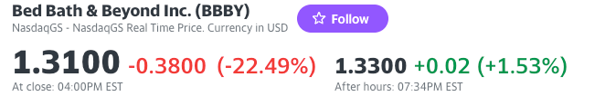美国家居用品零售商Bed Bath & Beyond(BBBY)表示,可能在数周内申请破产重组债务。 我们美股投资网早在一个月前公众号就警告过,