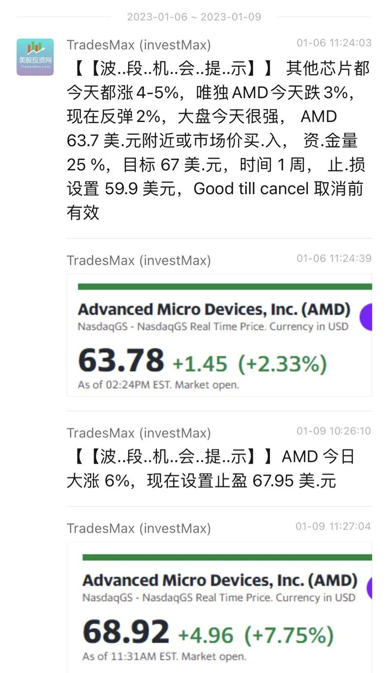 另外,我们也在上周五重仓抄底了 AMD ,这是发给Vip社群的消息截图