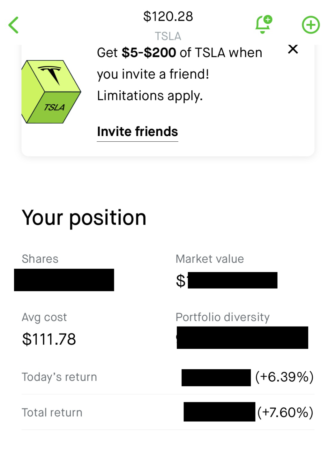 其实特斯拉在财报前,是可以分批建仓的,跌破100美元是有可能,只要你不是一下子满仓进场,分批就能让你降低成本。我第一次建仓是在111美元。