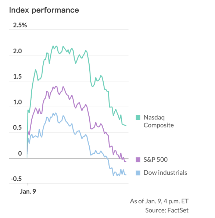 美国股市周一收盘一度大涨2%后回落,市场消化了上周五美国12月非农就业展示的通胀触顶降温迹象,风险偏好反弹。
