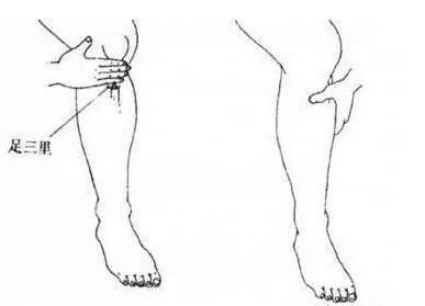 3.足三里穴:位于小腿外侧,犊鼻下3寸。主治胃肠病证、下肢痿痹、神志病、外科疾患、虚劳诸证。可用拇指按揉或按摩棒点按,也可配合艾灸,因为小腿肌肉丰厚,可适当较前面两穴力量加强,注意按压感受酸痛时配合呼吸。
