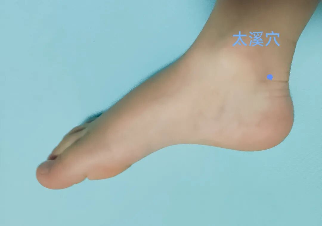 2.太溪穴:其位于足内侧,内踝后方与脚跟骨筋腱之间的凹陷处,也就是说在脚的内踝与跟腱之间的凹陷处。常用于防治牙痛、喉咙肿痛、气喘、支气管炎、手脚冰凉、关节炎、风湿痛等。