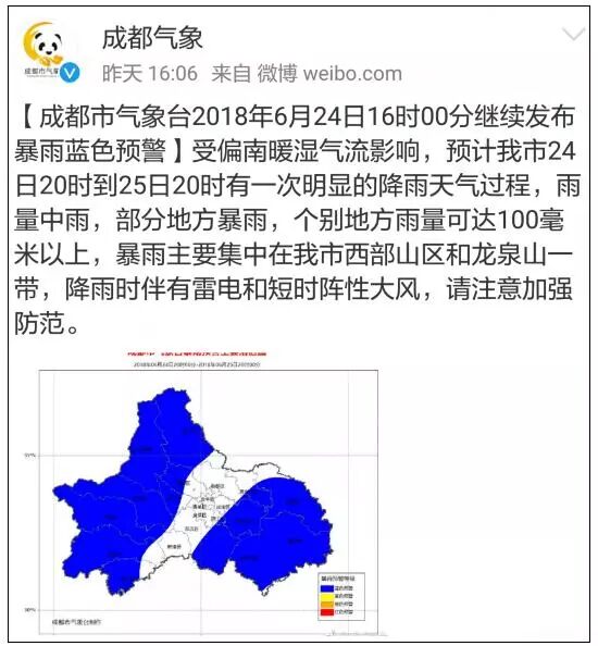 16:00分,成都气象台继续发布暴雨蓝色预警